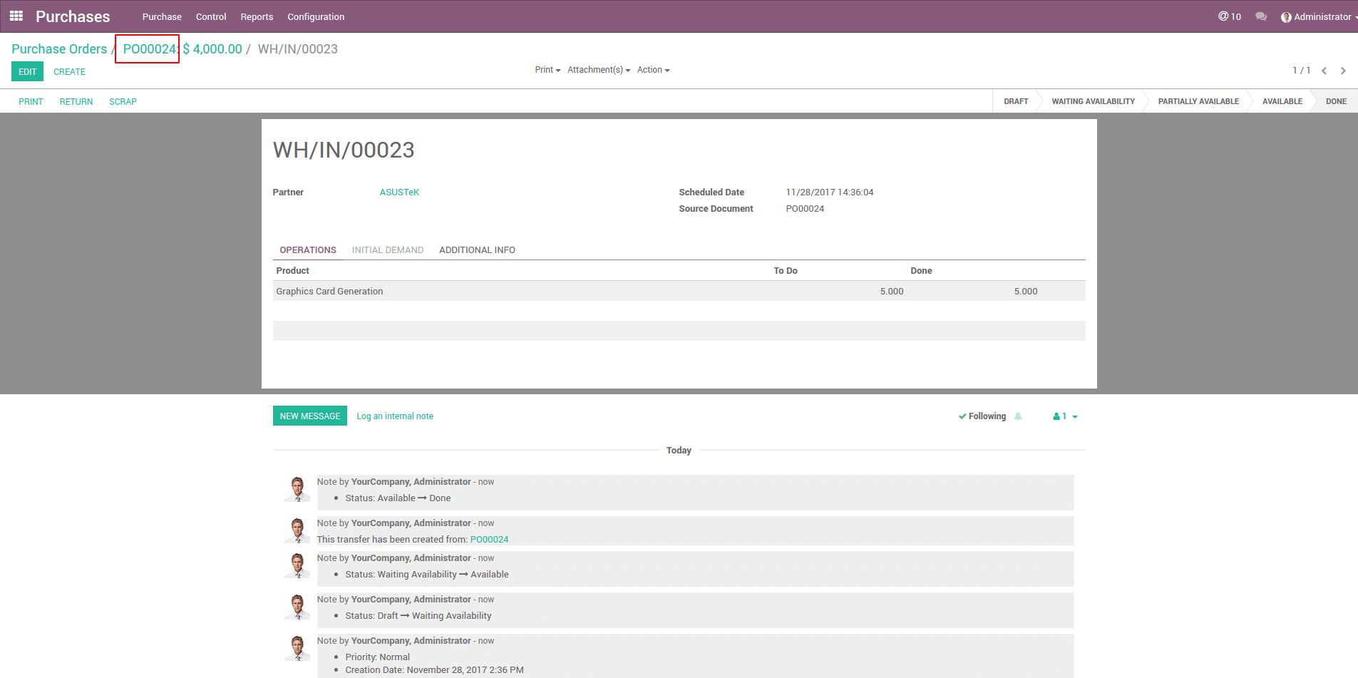 Receive the product of the purchase order