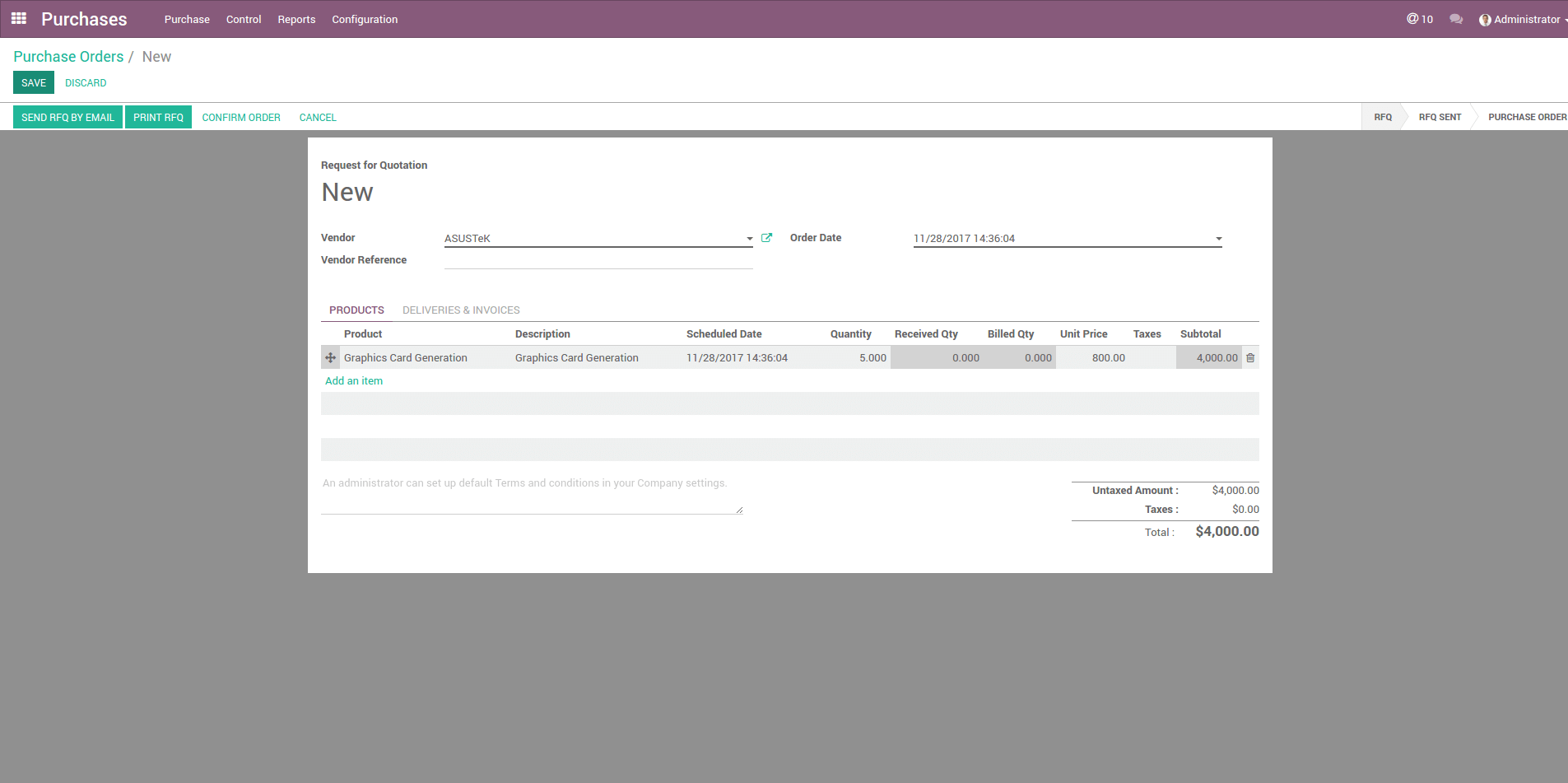 Generate a new purchase order for a product from abroad. Landed costs are only possible for products configured with 'automated' valuation with 'FIFO' or 'AVCO' costing methods. The costing method is configured in the product category.