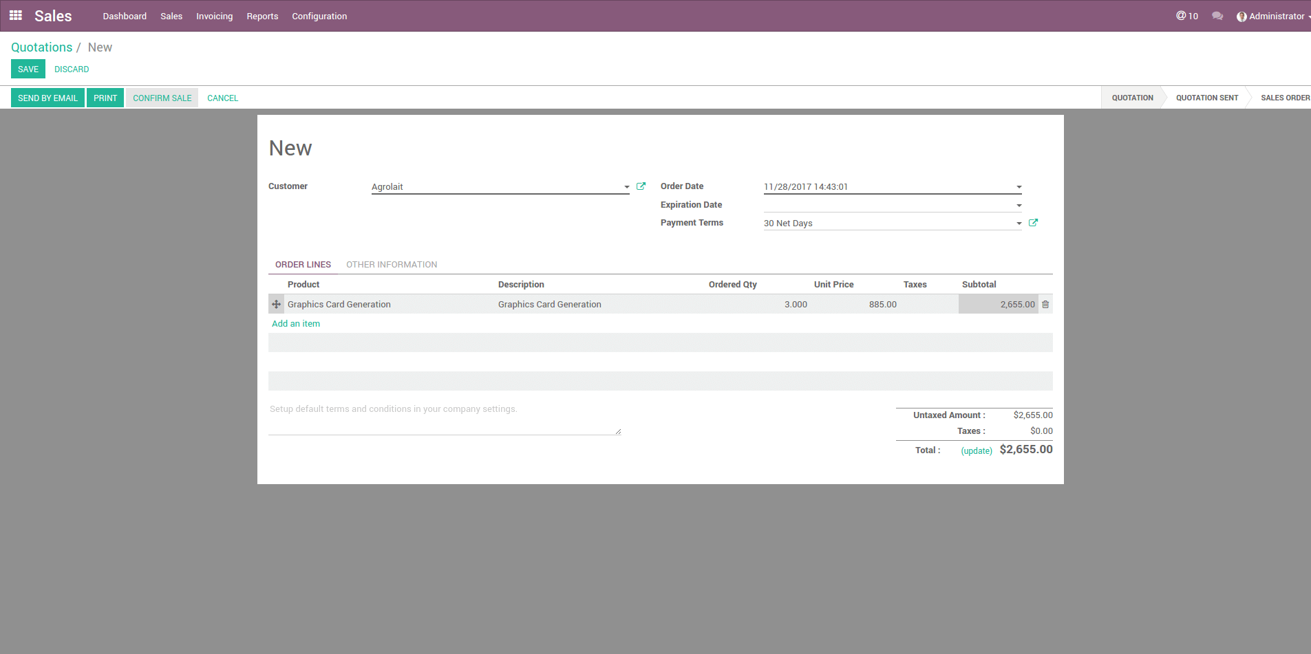 Create a sale order for the product purchased from abroad