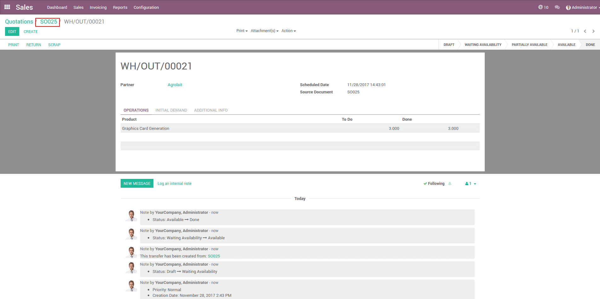 Delivery the product related to the sale order